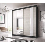 The Multi 35 wardrobe has been deftly designed for modern and contemporary homes. It captivates the eyes with its stunning frontal design featuring a beautiful, bright oak décor and stripes of white gloss wood with a tall mirror attachment. This wardrobe’s carcass is available in black, white or Oak Sonoma. Its storage options include six compartments and one hanging rail.