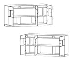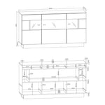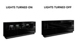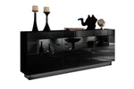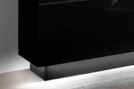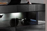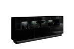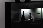 Sleek and ultra-modern, this sideboard cabinet with three partially-glassed hinged doors is a gorgeous addition to any room. Its interior can be upgraded with optional LED lights to put a spotlight on exhibited items.