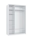 Exuding modern functionality and impressive storage space, this mirror wardrobe makes a stylish addition to any contemporary setting. The ideal piece for the bedroom with its three hinged doors, one hanging rail and seven shelves for storage. Finished in white gloss for an instant brightening effect, it will effortlessly blend into any modern decor.