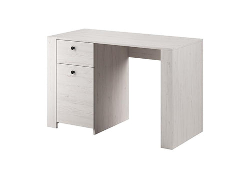 Rene is an aesthetic, modern desk that is finished in Andersen Pine. It features a drawer and one hinged door with two compartments behind it. Black knob handles are used to create a contrasting touch of colours.