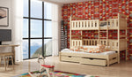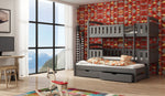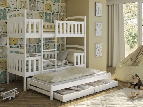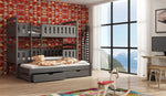 This stunning contemporary bunk bed has been made from solid Pinewood and comes with a trundle bed and two generously sized drawers. It is available in four different colours – white, grey, pine and graphite. The bed may be bought with or without the mattresses.