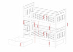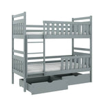 What better way to keep young ones close than with the Monika wooden bunk bed? This cozy unit features two spacious storage drawers underneath the bed, and a universal ladder that can be attached at either side. Moreover, at the upper and lower floors, safety rails will keep the little ones from toppling out, and ensure peace of mind. The Monika bunk bed can be bought with or without a mattress.