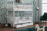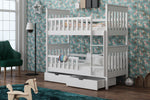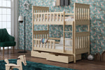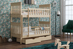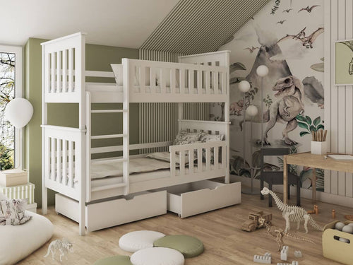 The Oliver bunk bed is made of solid pinewood and is easy to assemble and use. It includes a universal ladder, two safety guard rails that are removable (they can be mounted on either side of the bed) and a pair of practical drawers under the bed for additional storage space.