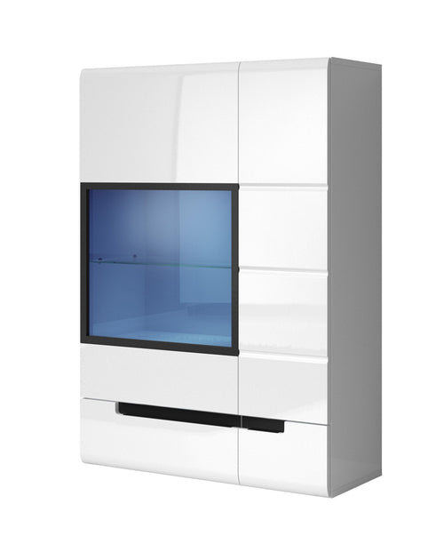 This stunning wall mounted cabinet is an exceptional choice for houses with limited floor space. With two hinged doors, one partially-glazed, the cabinet offers display space for decorations as well as concealed compartments for essentials. Hektor 12 is manufactured from 16mm laminated board with high gloss smooth surfaces, ensuring sturdiness and durability.