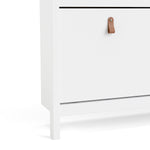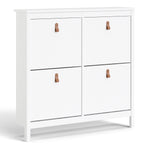 A modern shoe cabinet with four storage compartments in a striking design complete with brown leather tab handles, also available in contrasting matt black Size in mm: W 1024 x...