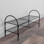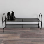 This two tier black powder coated show storage rack is a stylish and functional item. This smart storage unit is suitable for a maximum of 12 shoes and can store up to 6 pairs. Perfect for keeping shoes tidy in your hallway, or any other room in your home.