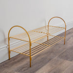 This two tier gold electroplated steel show storage rack is a stylish and functional item. This smart storage unit is suitable for a maximum of 12 shoes and can store up to 6 pairs. Perfect for keeping shoes tidy in your hallway, or any other room in your home
