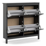 A modern shoe cabinet with four storage compartments in a striking design complete with a simple metal handle, also available in white Size in mm: W 1024 x H 1029...