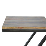 The Sullivan side table works the on-trend industrial look with understated charm. The top of the side table is constructed from 100% solid mango wood and the base/leg is made from 100% iron. Other features include a fine, smooth oak-ish finish. Adding another dimension to its character is its distinctive Z-shaped figure, resulting in a more streamlined look, but maintaining a solid structure.