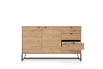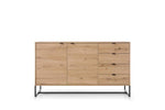 The Bärnsten sideboard cabinet is a functional, modern and brilliantly crafted piece that impresses with its high-quality craftsmanship and features four drawers and two hinged doors for storage. Finished in the aesthetic and timeless Oak Artisan with black metal legs, it will effortlessly blend in any modern or contemporary decor. It is made from 16mm laminated board with ABS edging.