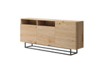 Our Enjoy sideboard cabinet is reminiscent of a highly stylish and modern taste. It’s comprised of three handle-free hinged doors, two open compartments and metal legs. It is available in three different colour schemes – graphite matt, white matt and Oak Artisan.