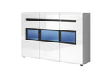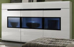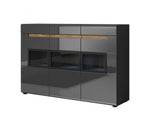 For that final touch of elegance in your living room, hallway or dining area, discover the class of this display sideboard cabinet - a beautifully crafted piece of furniture with a sturdy construction and an eye-catching style. Unlike other display cabinets on the market, this stunning piece boasts rounded edges which makes it look chic and more contemporary, and it will effortlessly blend in any decor. And if you are looking for a way to showcase your prized possessions, what better way than behind three partially-glazed hinged doors with exclusive, LED-compatible display compartments.
