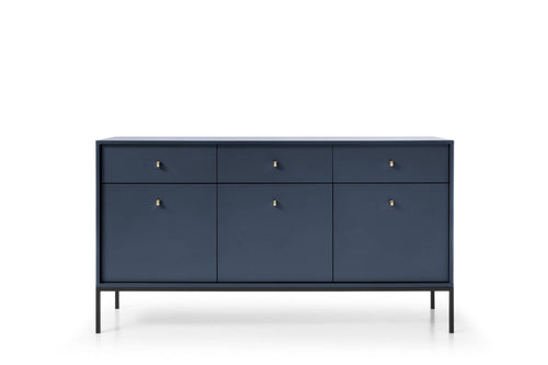 The Mono sideboard cabinet will effortlessly blend in any modern or contemporary decor and enhance it with style. With three drawers and three hinged doors, ample space is available for categorically storing a range of different items, both big and small. It is made from 16mm laminated board with ABS edging and there are two different colours to choose from: red or navy with black metal legs.