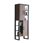 The Nordi 10 cabinet is a multi-functional piece of furniture. It features two hinged doors and six medium-sized open compartments for storing books or displaying decorations. Finished in a beautiful combination of oak and black matte, the cabinet will effortlessly blend into any home decor.
