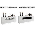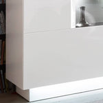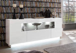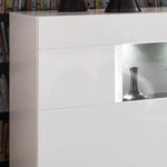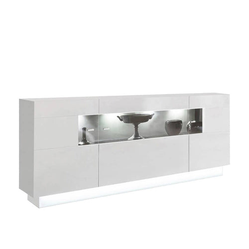 Sensis is a stunning display sideboard finished in the captivating white gloss. It has three partially-glassed hinged doors, each offering three compartments behind for storage. Part of its interior can be lit up with LED lighting that is available separately for purchase.