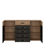 2 door 5 drawer wide cupboard in Stirling Oak with matt black fronts. Perfect cupboard for bedroom storage with adjustable shelves behind the two doors and plenty of room in the 5 drawers. This beautiful high-class bedroom collection is a perfect choise for modern and functional living.