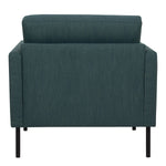 Armchair in Soul Dark Green with black legs. A modern inspired design, kept sleek and angular with slim legs. Comfort has not been sacrificed for design, with its comfy back cushions and wide armrests. All together the perfect and stylish place to spend your evenings.