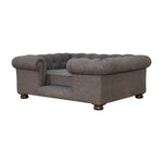 Match your pets' furniture seamlessly to your interior. This sofa/bed has been upholstered in a lush battleship tweed with a deep button design and padded cushions for ultimate comfort for your pet. Perfect for your cat or dog. Other features include turned legs for stability.