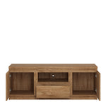 A practical table top will allow you to place a TV on it, and an open shelf for placing RTV equipment. The design of the chest of drawers is well thought out to allow the owners to store various things, there is a full extension drawer and two cabinets. The Fribo collection is equipped with a modern handle-free system. The furniture is made of laminated chipboard, resistant to moisture, scratches, damage and high temperature. The program is available in two color versions: Alpine White and Golden Ribbeck Oak.