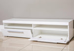 Show off your TV in a stylish way with this modern cabinet. Equipped with two open compartments and two closed ones, it provides ample storage room for your DVDs, gaming consoles and other electronic gadgets. Thanks to its high-quality laminated board construction, the unit is sturdy and durable. It will fit into any living space and add a stylish note to your home decor.