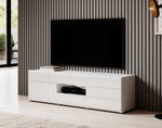 The Toledo 41 is a functional, modern and brilliantly crafted TV cabinet that impresses with its high-quality craftsmanship and design. It has two hinged doors with a pair of drawers and one LED-compatible compartment for storage. The cabinet’s modest size makes it the perfect choice for creating a stylish entertainment corner in the house, whether in the living room or bedroom.