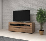 Give your living room or bedroom an understatedly elegant look with this functional TV cabinet. It offers one large double-drawer, as well as an open compartment for storage, and is available in two different colours – white gloss and Oak Grandson. It is crafted from 16mm laminated board, offering both good looks and practicality.