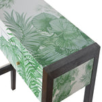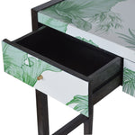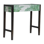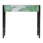 Introducing the LLB range. Mid-Century Modern has never looked so elegant. Avanti is the epitome of sleek elegance combined with the exquisite Fine Art of the extensive LLB design archive to make pieces that will most certainly become antiques of the future. The main feature of this console table is the beautiful screen-printed tropical print that covers 4 sides of the piece. The product has MDF drawers and 2 ash black frames constructed from 100% solid mango wood along with 3 shiny knobs, allowing the product to stand sturdy in your home. Works as a handy piece and is perfect for use in the hallway. Designed by Laurence Llewelyn-Bowen.