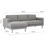 Cleveland Chaiselongue Sofa - NOVA Light Grey (LH)