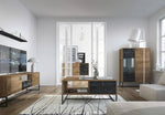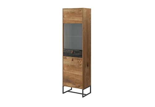 Stunning cabinet that is ideal for showcasing your collectibles, photographs, or other personal belongings. The carcass is made from 16mm laminated board with 18mm MDF board fronts. Stylish metal legs are used to further complement the industrial style of this display unit, while leather handles add an aesthetic touch.