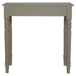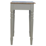 This one drawer writing desk is constructed from 100% solid mango wood and has a French grey hand-painted base and a stained oak-ish top. Other features include hand-carved flute legs...
