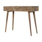 Add this beautiful dressing table to your home. Constructed from 100% solid mango wood with 3 storage drawers which offer a unique carved design, it also features a foldable mirror...