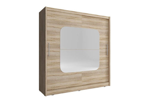 Very functional and capacious, this wardrobe catches the attention with its aesthetic set of mirrors, at the front, with rounded edges. The Maja VIII features two smoothly moving sliding doors...