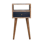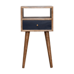 This beautifully designed bedside is constructed from 100% solid mango wood and has a fine oak-ish finish. Useful storage space is available with 1 navy hand-painted drawer, 1 shelf, and...