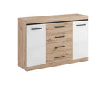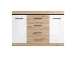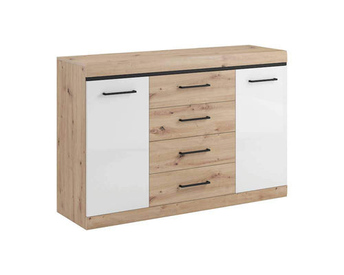 Modernize your living room with the Nelly sideboard cabinet. This versatile accent piece features four drawers and four closed compartments for storage, all finished in the stunning white gloss, paired...