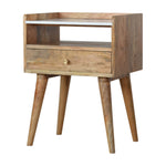 This beautiful bedside has been constructed from 100% solid mango wood and has a fine oak-ish finish. It had Nordic style legs and some features include one drawer, one open...
