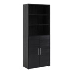 Prima Bookcase 5 Shelves with 2 Doors in Black woodgrain