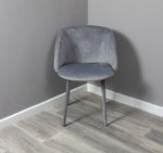This impressive dining chair is covered from top to bottom with a sumptuous soft grey velvet for a slick approach to modern dining chairs. The curved back, hugs the contours...